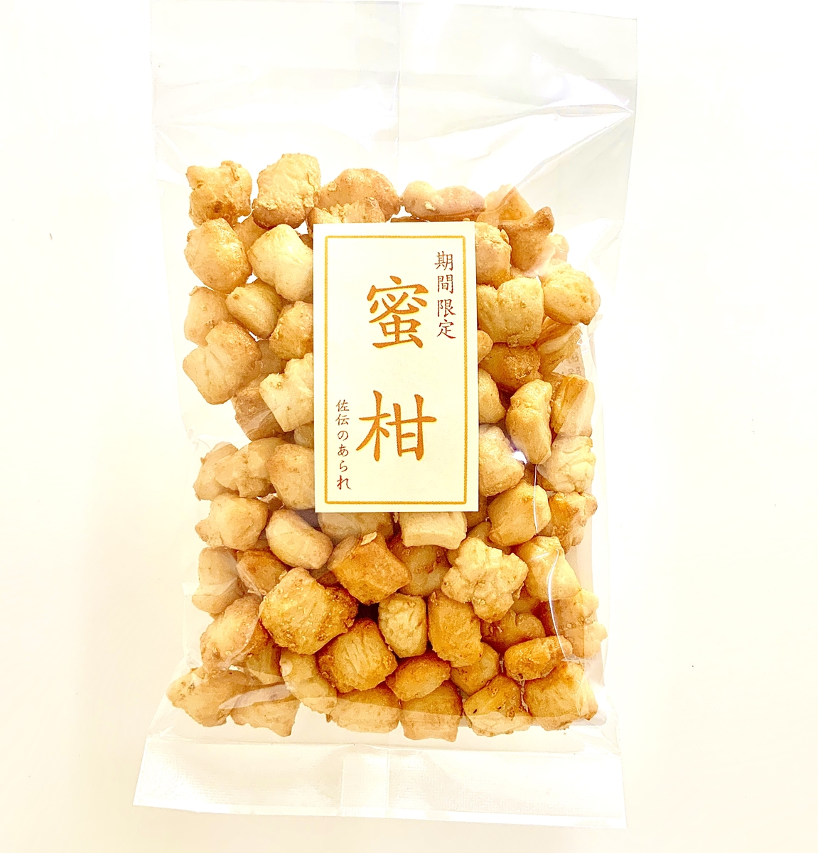 餅米(国産)、醤油(小麦・大豆を含む)、陳皮、砂糖、発酵調味料、鰹エキス、昆布エキス / 加工でん粉、糊料(プルラン)、調味料(アミノ酸等)